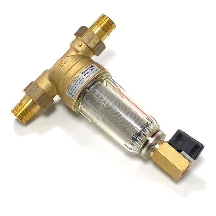 Honeywell FF06-1/2" AA (серии Mini Plus) с прямоточной промывкой предназначен для предварительной очистки холодной воды. Фильтры серии FF06 используются для чистки холодной воды от механических примесей размером до 100 мкм. Основное предназначение фильтра – защита сантехники, бытовой техники подключенной к водопроводу от инородных тел, песчинок, ржавчины, пеньки и т.д. Фильтр имеет компактные размеры, спроектирован для монтажа в ограниченных местах. Устанавливается в горизонтальном трубопроводе чашей вниз. Прозрачный ударопрочный корпус фильтра обеспечивает простоту слежения за степенью загрязнения фильтра. Сменная фильтрующая сетка изготовлена из нержавеющей стали и, при необходимости, заменяется на другую, без демонтажа фильтра. Скопившиеся примеси на дне чаши фильтра и на сетке просто смываются водой при открытии клапана.