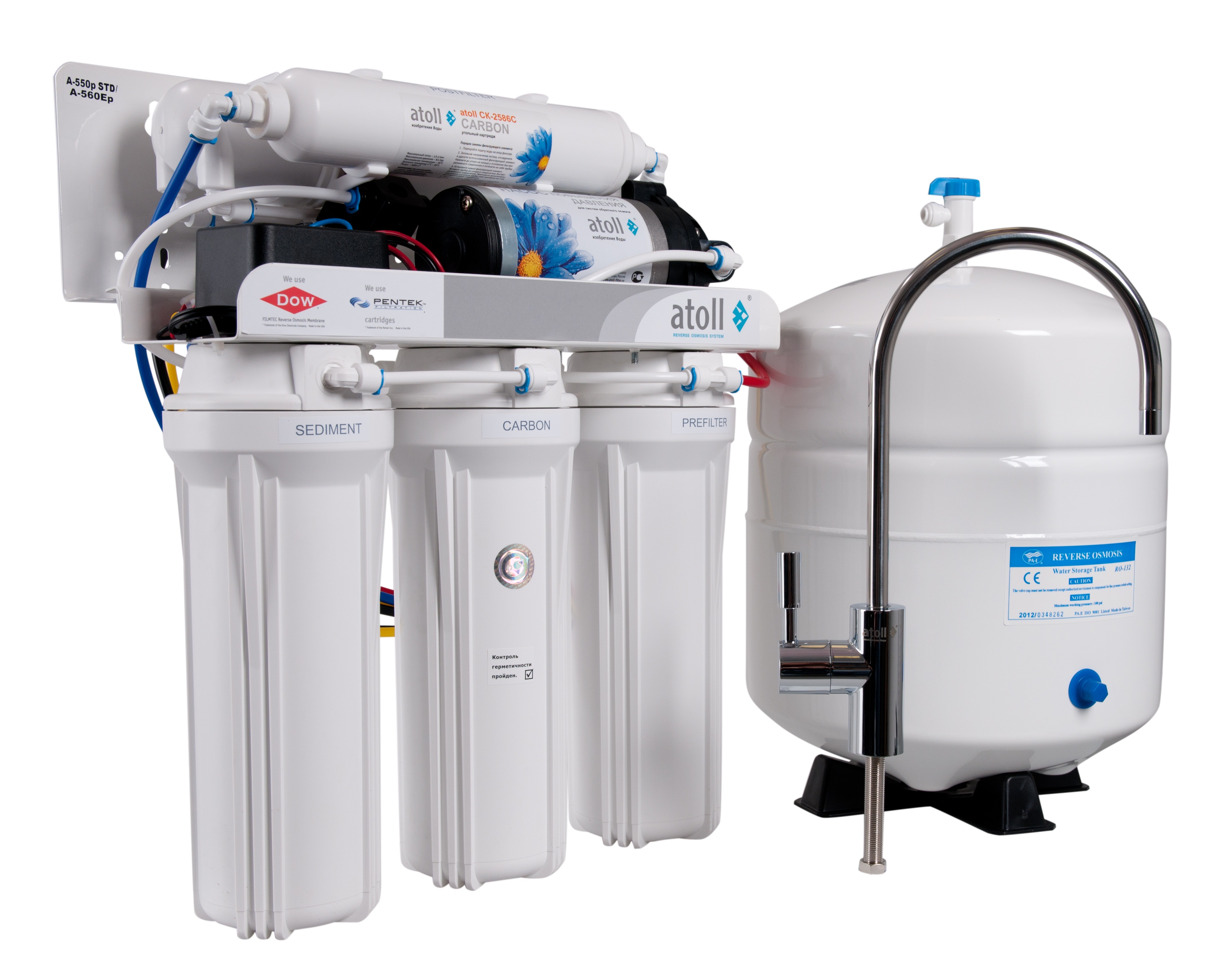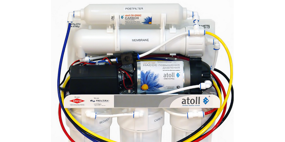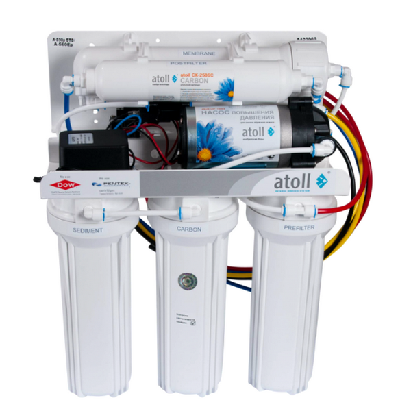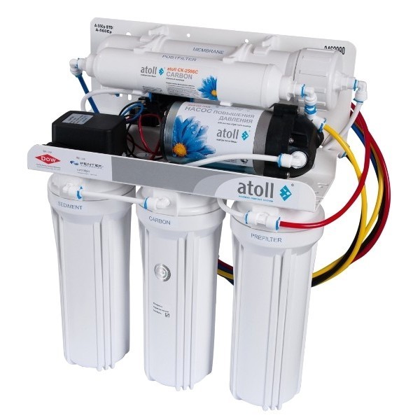 Фильтр Atoll A-550p - один из базовых продуктов линейки систем очистки воды методом обратно осмоса от торговой марки Atoll. Установка состоит из трехступенчатого блока предварительной очистки, мембраны обратного осмоса и угольного постфильтра. Фильтр укомплектован помпой, которая устанавливается в тех домах и квартирах, которые имеют низконапорный трубопровод подачи холодной воды. Подкачивающий насос повышает давление на входе в мембрану до требуемых 3 — 6 атм.