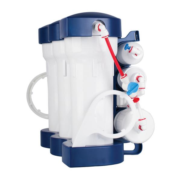 На первых трех этапах подготовки вода проходит трехступенчатую предварительную очистку, используя специальный комплект картриджей. Во время фильтрации происходит многоступенчатое удаление механических примесей, хлора, органических и хлорорганических соединений. Кроме очистки воды, предфильтры предохраняют мембрану обратного осмоса от повреждений и увеличивают ее ресурс.