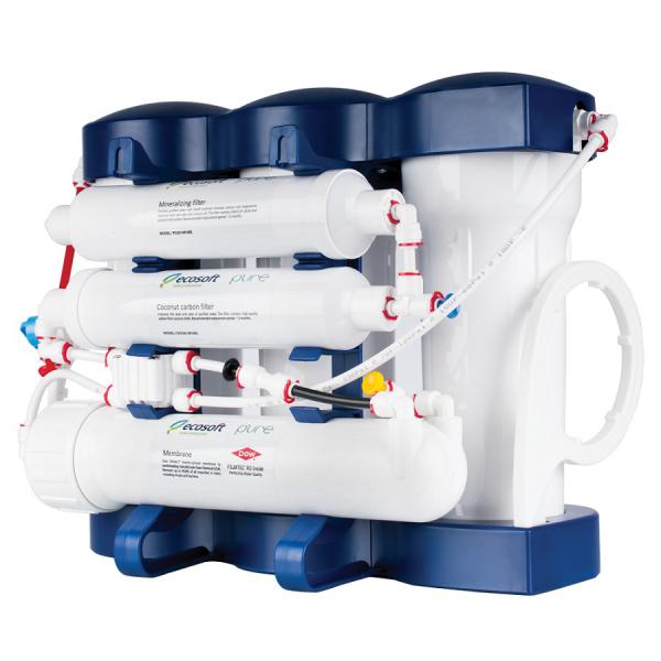 Фильтр обратного осмоса P`URE Ecosoft представляет собой 6-ступенчатую систему водоподготовки, основанную на технологии обратного осмоса. Перед очисткой с помощью обратноосмотической мембраны вода проходит 3-ступенчатую предварительную фильтрацию, а по ее окончании – дополнительный постфильтр, картридж которого наполнен активированным углем из скорлупы кокосового ореха. Завершает многоступенчатую подготовку чистой питьевой воды этап минерализации, во время которого она насыщается необходимыми микроэлементами.