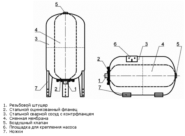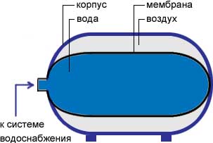 Для стравливания воздуха из системы водоснабжения при использовании горизонтальных гидроаккумуляторов делается специальный клапан, кран или слив, который устанавливается после гидроаккумулятора.