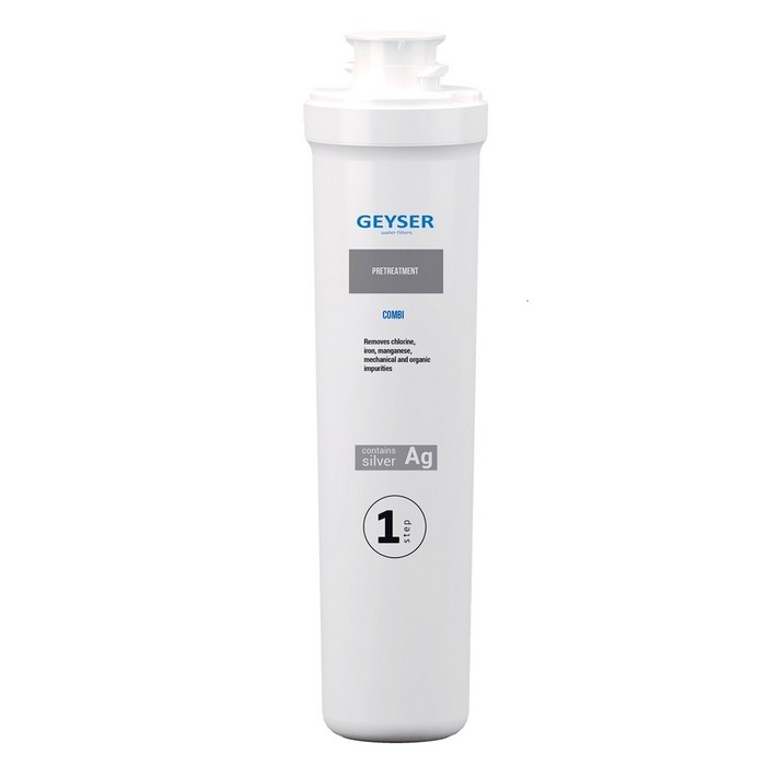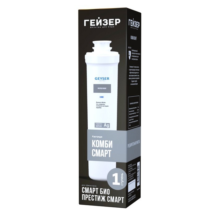 Картридж Гейзер Комби Смарт предварительной очистки для фильтра Гейзер Престиж Смарт состоит из мультикомпонентной загрузки. Выполняет эффективную пред очистку для защиты мембраны. Загрузка создан на основе материала Арагон и высококачественного кокосового активированного угля.