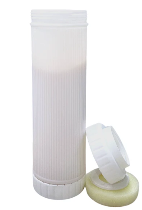 Фильтрующий материал (гранулированный активированный уголь) расположен внутри полистиренового внешнего корпуса. Полистиреновые наконечники фиксируют фильтрующий материал, полипропиленовый постфильтр.