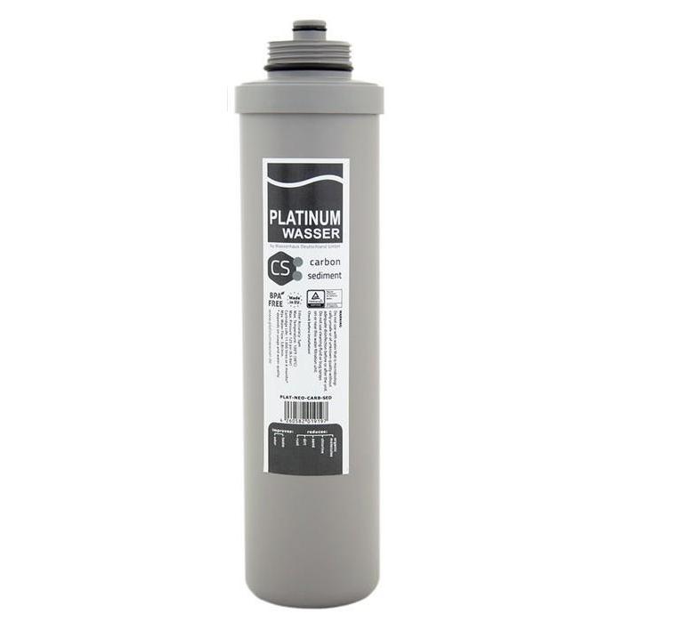 Картридж Platinum Wasser CS Carbon - Sediment  -двухступенчатый картридж, состоящий из полипропилена и гранулированного активированного угля на последней ступени осуществляет тонкую финишную очистку воды. Запатентованные картриджи высокого качества с гранулированным активированным углём, улучшают вкус и запах воды, а также тщательно удаляют: