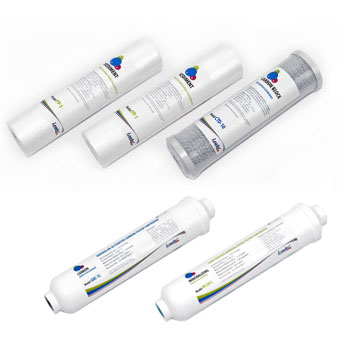 Полный комплект картриджей для фильтра воды Leader RO-6. Набор состоит 5-ти элементов: Картридж Leader 10" PP-5 мкм; Картридж Leader 10" CTO (брикетированный уголь); Картридж Leader 10" PP-1 мкм; Постфильтр Leader in-line GAC 1; Минерализатор Leader in-line MIN-1.