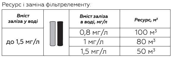 - Ресурс картриджа - 100 м3 (при содержании железа в воде 2 мг/л)*