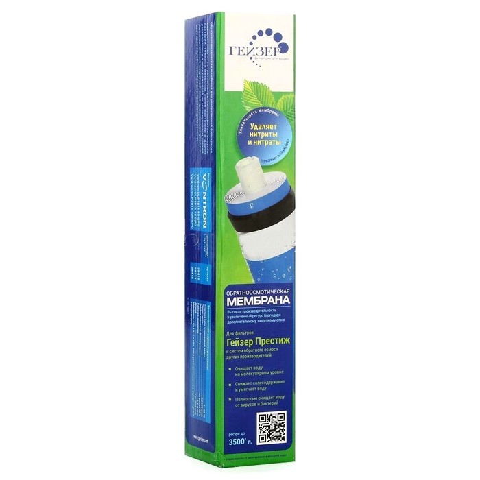 Гейзер 1812-50 GPD - обратноосмотическая мембрана Гейзер 1812-50 предназначена для бытовых систем обратного осмоса. Представляет собой сменный рулонный обратноосмотический элемент для ультратонкой очистки воды от растворенных примесей, солей жесткости, органических и микробиологических загрязнений.