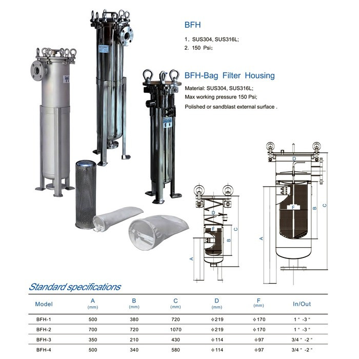 Фильтр механический высокой производительности мешочного типа устойчив к высокому давлению (150psi).