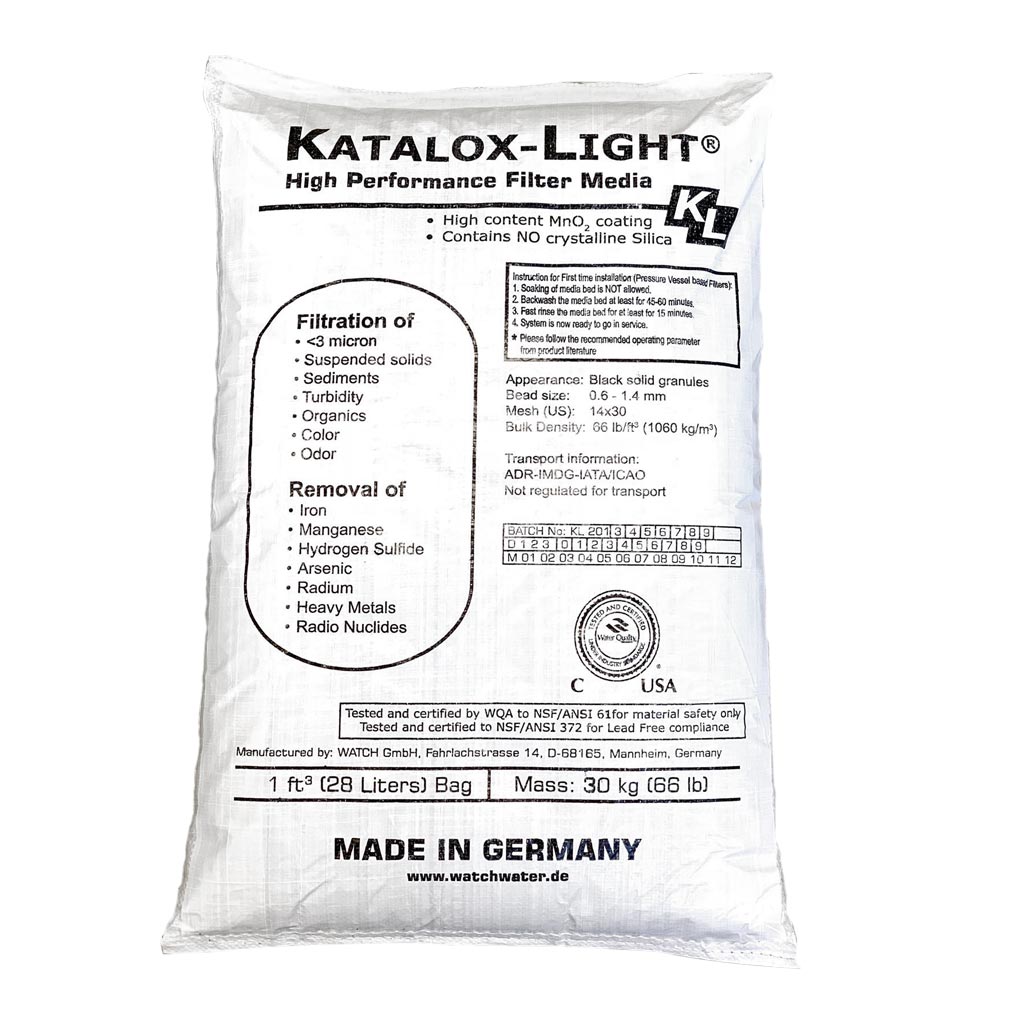 Комбинация окислительной способности, как у тяжелых загрузок и лёгкого веса как у Birm, позволяет загрузке Katalox-Light эффективно удалять железо, марганец и сероводород в больших концентрациях и с высоким рейтингом фильтрации (как Pyrolox) и регенерироваться небольшим объёмным потоком воды (как Birm).