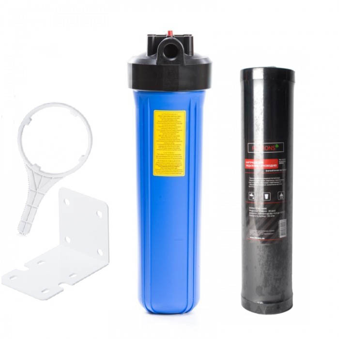 • Типорозмір Big Blue 20 : Великий розмір корпусу фільтра дозволяє використовувати елементи, що фільтрують, з високою пропускною здатністю, що робить його ідеальним для будинків з високим споживанням води.