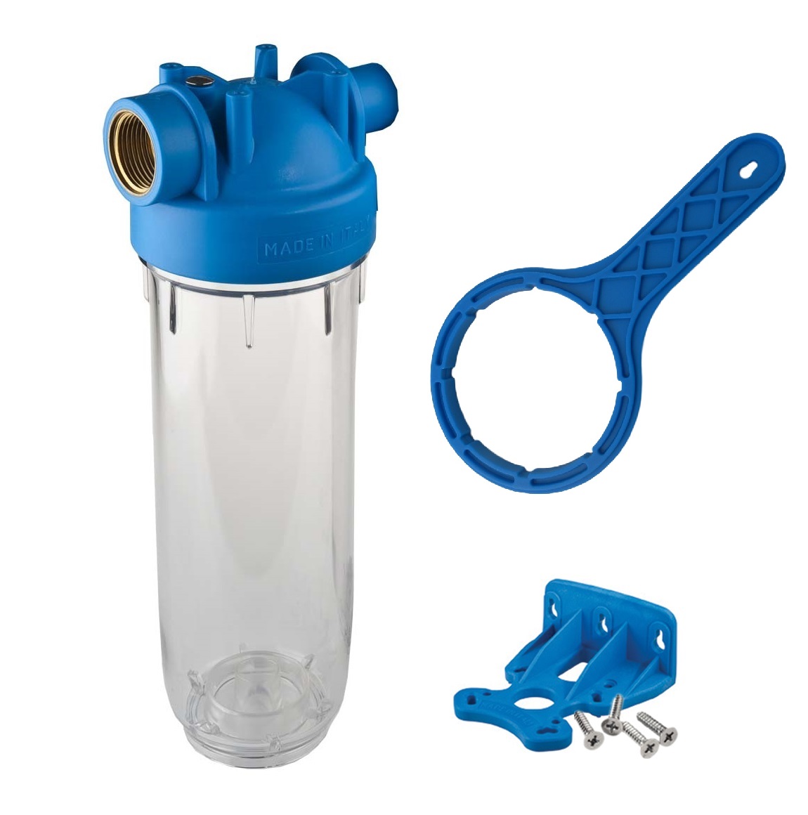 Фільтр магістральний ATLAS FILTRI DP 10 MONO 1/2" KIT (RA1280501 - двоелементний корпус фільтра для холодної води з латунними вставками, призначений для фільтрації питної води та захисту трубопровідних систем, водонагрівачів, насосів, пом'якшувачів, демініраторів, демініратор захисту побутової техніки, такої як пральні машини, від впливу неякісної води.