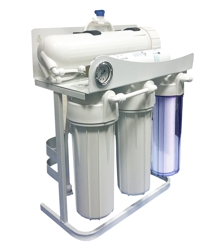 Проточний фільтр зворотного осмосу - комплектується краном з керамічним перемикачем і двома насосами, що забезпечують нормальний тиск на мембрани та їх продуктивність.