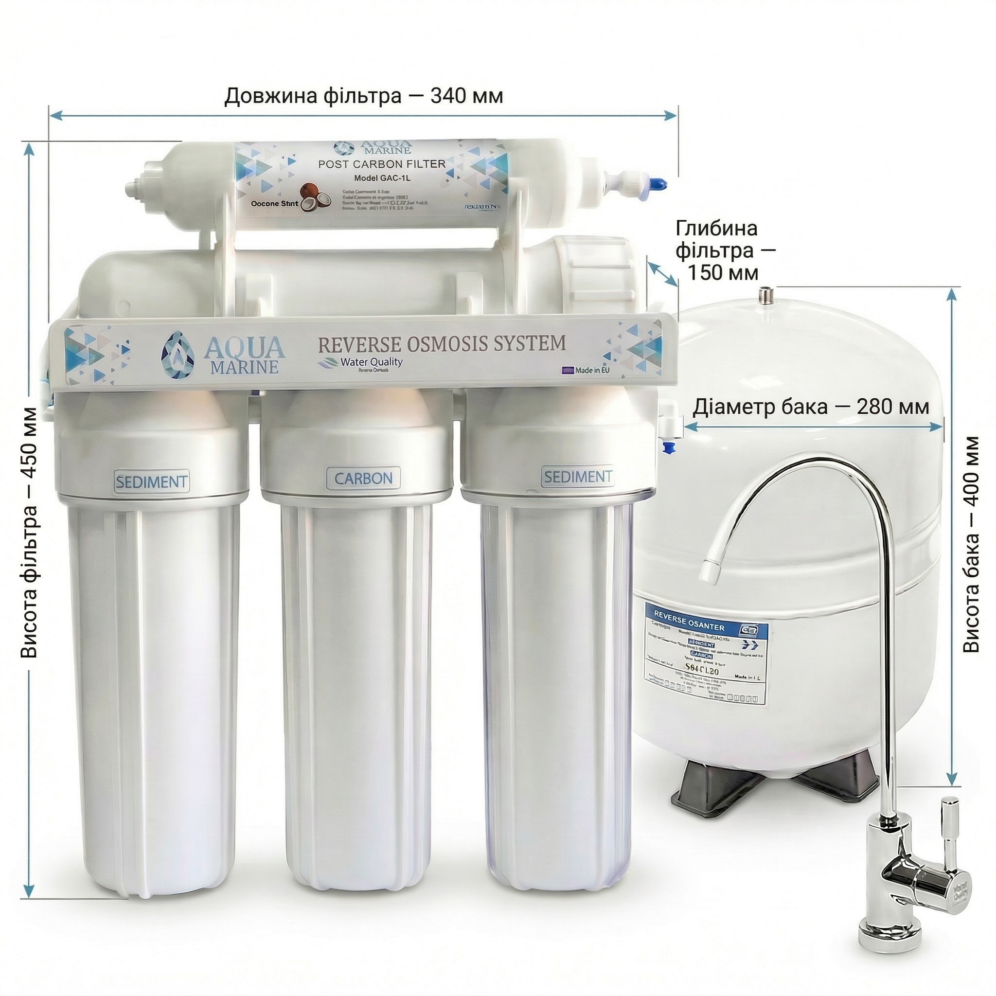 Фільтр з зворотнім осмосом AquaMarine RO-5 - це базова модель системи зворотного осмосу, що складається з 5 ступенів очищення, що забезпечує надійну фільтрацію та покращує якість питної води у вашому будинку.