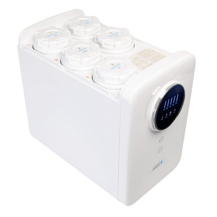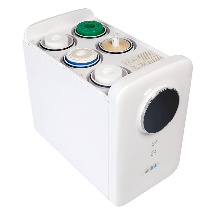 Новинка 2019 року – модель atoll A-5500mp STD (Cruise) – фільтр прямоточного типу (без накопичувального бака). Незважаючи на всю компактність фільтра, у блоці префільтрації використовуються стандартні (Slim Line 10”) картриджі Pentek виробництва Pentair (США) – світового лідера у цій галузі. Назад осмотична мембрана atoll має в 10 разів більш високу продуктивність ( 500 gpd – тестувалася за методикою Dow ), порівняно з наймасовішою стандартною мембраною на світовому ринку. Вбудований потужний малошумний насос підвищення тиску забезпечує стабільність роботи системи у широкому діапазоні тисків у водопроводі.