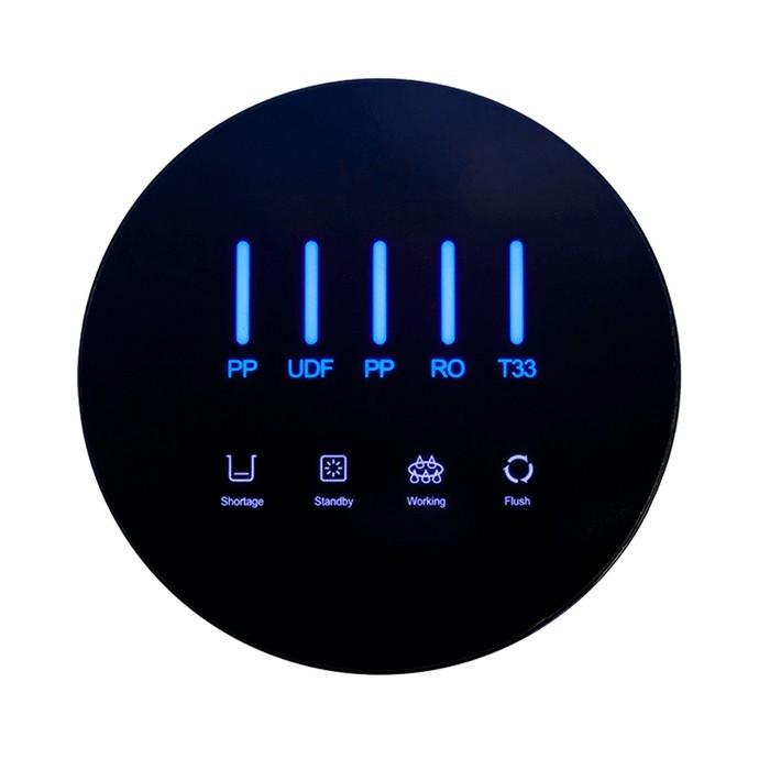 3. Вбудований процесор контролює всі режими роботи системи та відображає їх за допомогою піктограм на індикаторі. Режими фільтрації, автоматичного промивання мембрани, відсутності води у водопроводі і навіть спрацьовування датчика протікання;