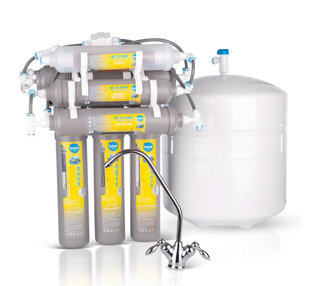 Нова серія фільтрів від Bluefilters з технологією New Line - це акуратний і компактний зовні, але дуже ефективний всередині пристрій, який дозволяє отримувати бездоганну якість питної води в домашніх умовах. Установка складається з триступеневого блоку попереднього очищення, мембрани зворотного осмосу та вугільного постфільтра, мінералізатора.