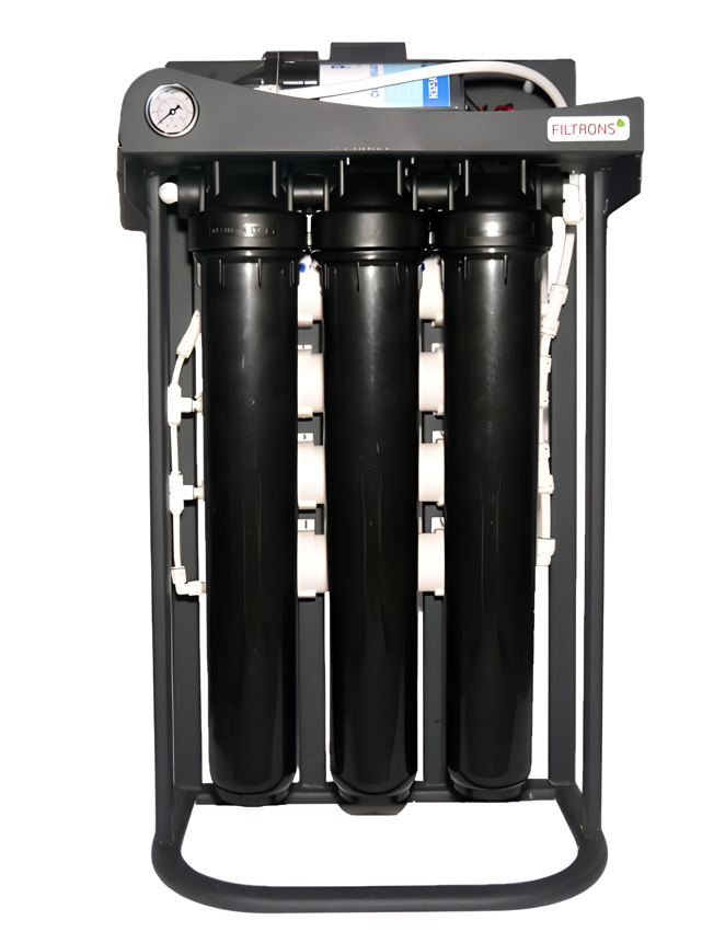 Прямоточна високопродуктивна система зворотного осмосу FILTRONS RO500 розроблена для очищення води з використанням п'ятиступінчастої мембранної технології. Система обладнана насосом для підвищення тиску води та працює без накопичувального бака. Виготовляється українськими фахівцями компанії Filtrons, яка створює високоякісне обладнання для очищення води.