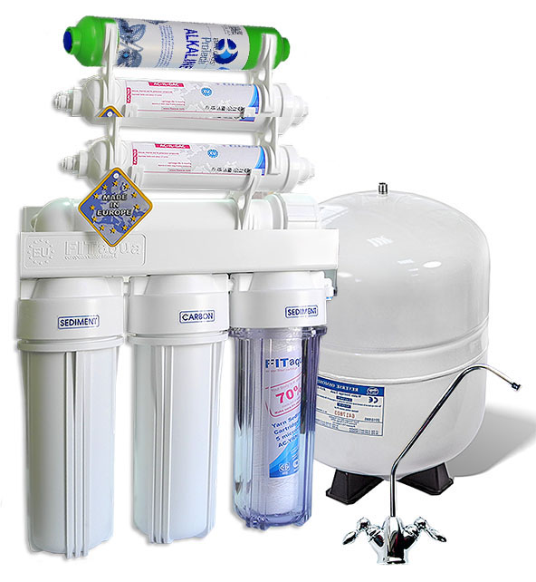 6 стадія - Мінералізатор Fitaqua AC-1L-MIN. На даному етапі очищена вода подається на мінералізатор, в якому відбувається її насичення мікроелементами. Вода, що пройшла очищення системою зворотного осмосу, має низький вміст солі, що добре для приготування їжі і заварювання чаю і кави. Але, знесолена вода має знижений рН, тому для води зі зниженим вмістом солей застосовується картридж - мінералізатор , який збагачує воду природними мінералами, необхідними для організму людини, такими як хлориди та бікарбонати кальцію, магнію, натрію та калію.