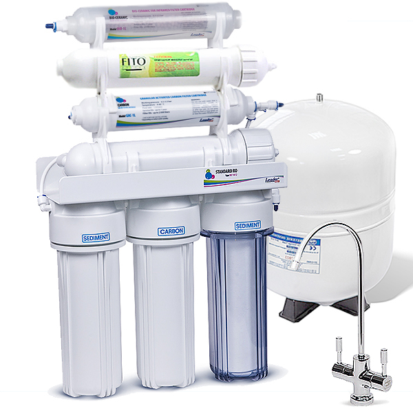 7 стадія - Біокерамічний картридж Leader In-line Bio. Застосовується в системах зворотного осмосу як додатковий елемент для структуризації – покращення якості води. Вода якісно перетворюється – стає активною, насичуючись енергією спектру сонячного світла. Така вода володіє трьома особливостями: високою розчинною, розщеплюючою та обмінною дією. М'яка, насичена киснем, приємна на смак вода сприяє збереженню здоров'я людини.