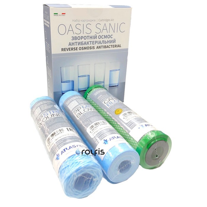Річний комплект ATLAS FILTRI Oasis DP Sanic – це набір антибактеріальних нижніх картриджів для систем ATLAS FILTRI OASIS DP SANIC LSP000005 (FA Sanic+CPP Sanic+CB VOC), який також включає вугільний постфільтр ATLAS FILTRI RE7402004 та мінералізатор Atlas Fil2. Цей комплект підходить не тільки для систем зворотного осмосу Atlas, але і для інших виробників, що робить його універсальним і практичним рішенням.