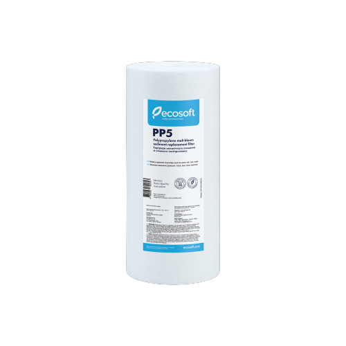 Картридж поліпропіленовий спеціально створений для видалення механічних домішок більше 5 мкм. Як фільтруючий матеріал використовується спінений поліпропілен. Ресурс – 12 000 л.