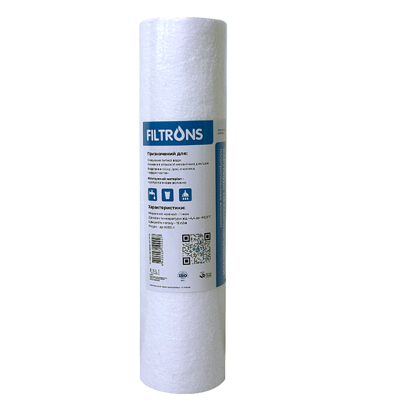 Картридж із спіненого поліпропілену Filtrons FLP10SL5 2,5 Х 10, 5 мкм - використовується для очищення води від завислих частинок діаметром до 5 мкм у магістральних фільтрах, які встановлюються на вході до квартири або будинку. Даний механічний картридж має однорідну структуру, що дозволяє ефективно затримувати всі механічні домішки, що містяться у водопровідній воді. Картридж необхідно міняти не рідше ніж 1 раз на 6 місяців, незалежно від об'єму очищеної води.