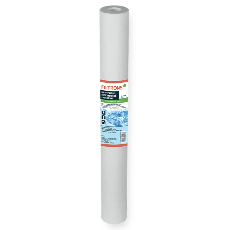 Картридж із поліпропілену Filtrons FLP20SL10, 10 мкм призначений для ефективного видалення з води механічних домішок. Фільтруючий матеріал – поліпропіленова нитка високої якості. Ресурс картриджа становить 8000-12000 л. Картридж призначений для доочищення холодної водопровідної води від наступних видів механічних домішок: