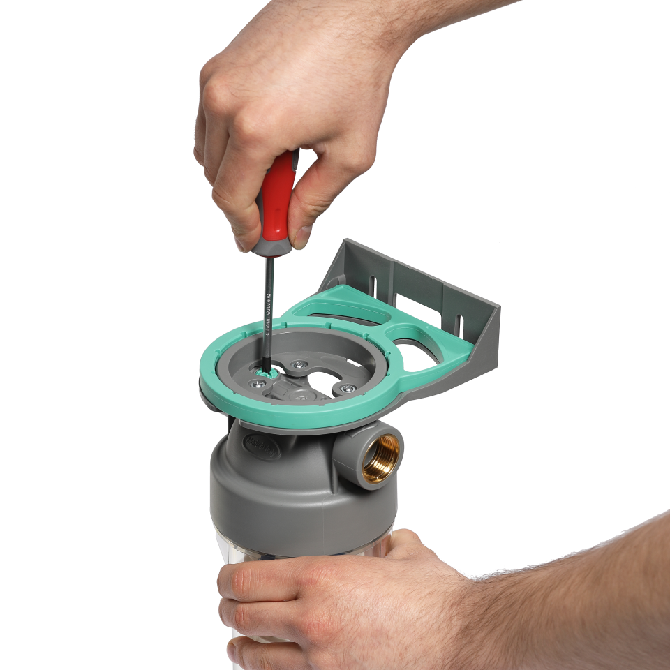 Монтаж фільтра виконується кваліфікованим спеціалістом. Для забезпечення нормальної роботи фільтра, щоб запобігти аварійним ситуаціям, що виникають внаслідок стрибків тиску в трубопроводі, рекомендуємо при підключенні додатково використовувати регулятор тиску, який монтується в магістраль перед фільтром. Фільтр підключається до водопроводу за допомогою металопластикових труб. Фільтр складається із прозорої колби, всередині якої знаходиться картридж (не входить до комплектації). У процесі фільтрації вода подається на картридж, який затримує домішки. В результаті ви отримуєте чисту воду.