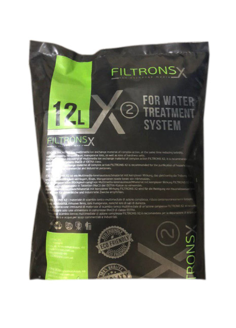 Фільтруюче завантаження FILTRONSX2 – мультимедійний іонообмінний матеріал комплексної дії, під час роботи одночасно знижує каламутність, кольоровість, окислюваність, видаляє іони заліза, марганцю, а також іони солей жорсткості. FILTRONSX2 – складається із шести, спеціально підібраних, компонентів різного спектру дії. Під час роботи FILTRONS'аX2 компоненти «розшаровуються», залежно від насипної ваги та щільності іонного матеріалу, та виконують кожен свою функцію. Для виробництва FILTRONSX2 використовуються іонообмінні матеріали виключно для виробництва країн ЄС та США.