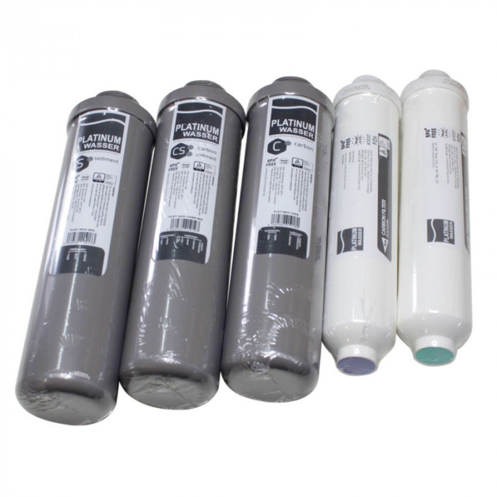 Комплект картриджів Platinum Wasser NEO+Post+Mіn призначений для заміни всіх змінних елементів у системах зворотного осмосу Platinum Wasser NEO 6. Завдяки продуманому технологічному вирішенню, картриджі Platinum Wasser забезпечують високий ступінь фільтрації, що перевищує стандартні 10-дюймові картриджі. Збільшений час контакту води з фільтруючими шарами сприяє більш ефективному механічному та вугільному очищенню.