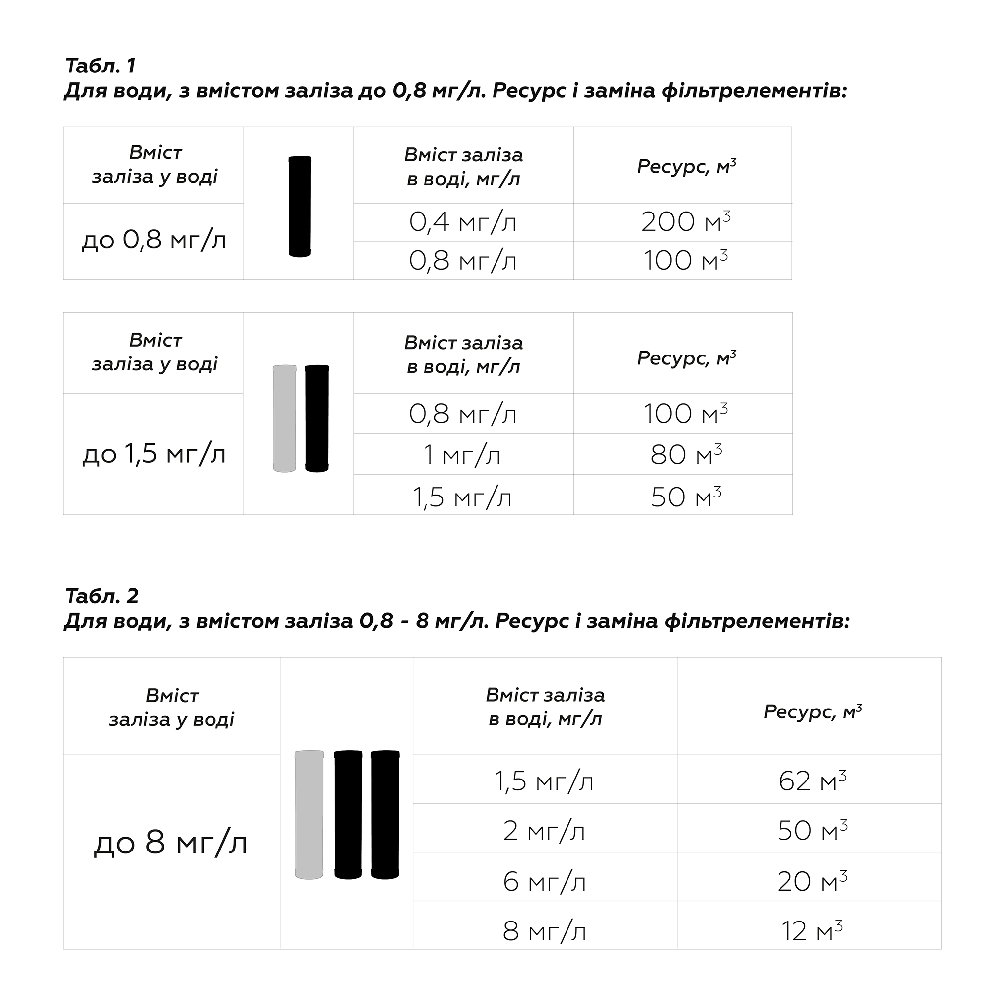 * При підвищених значеннях рівня Fe ресурс визначається за допомогою таблиць (додаткове фото).