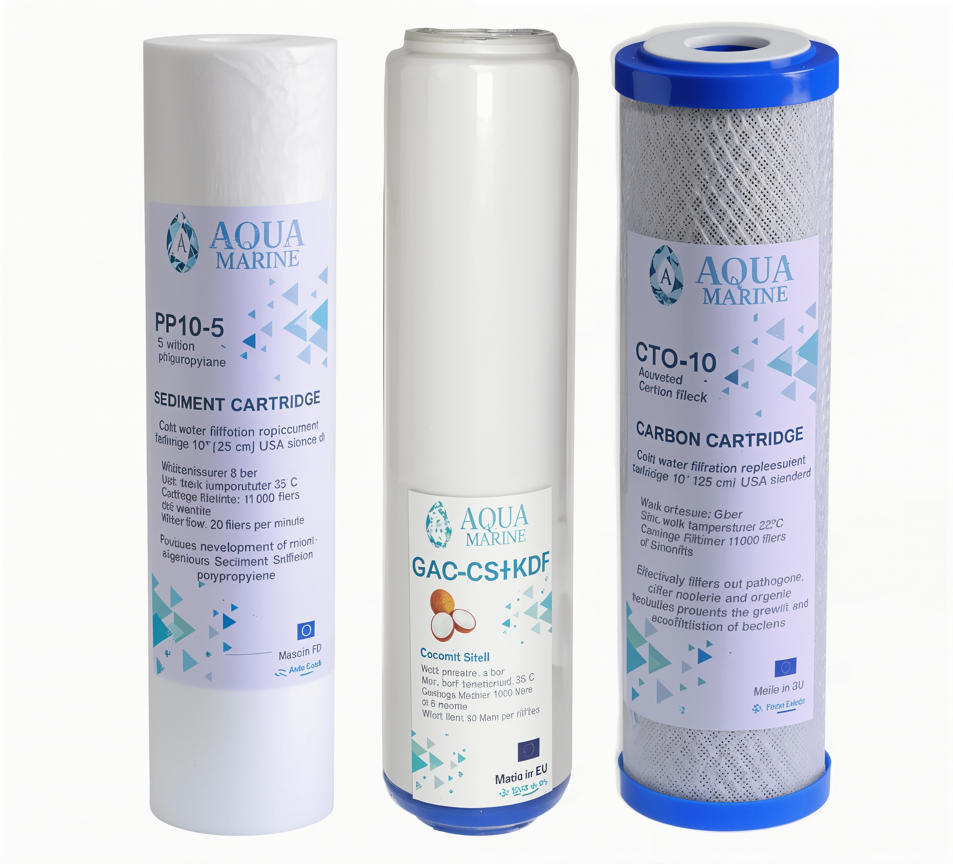 Комплект картриджів AquaMarine (хлор) - ідеальне рішення для захисту вашої системи фільтрації та забезпечення чистої, смачної та безпечної води.