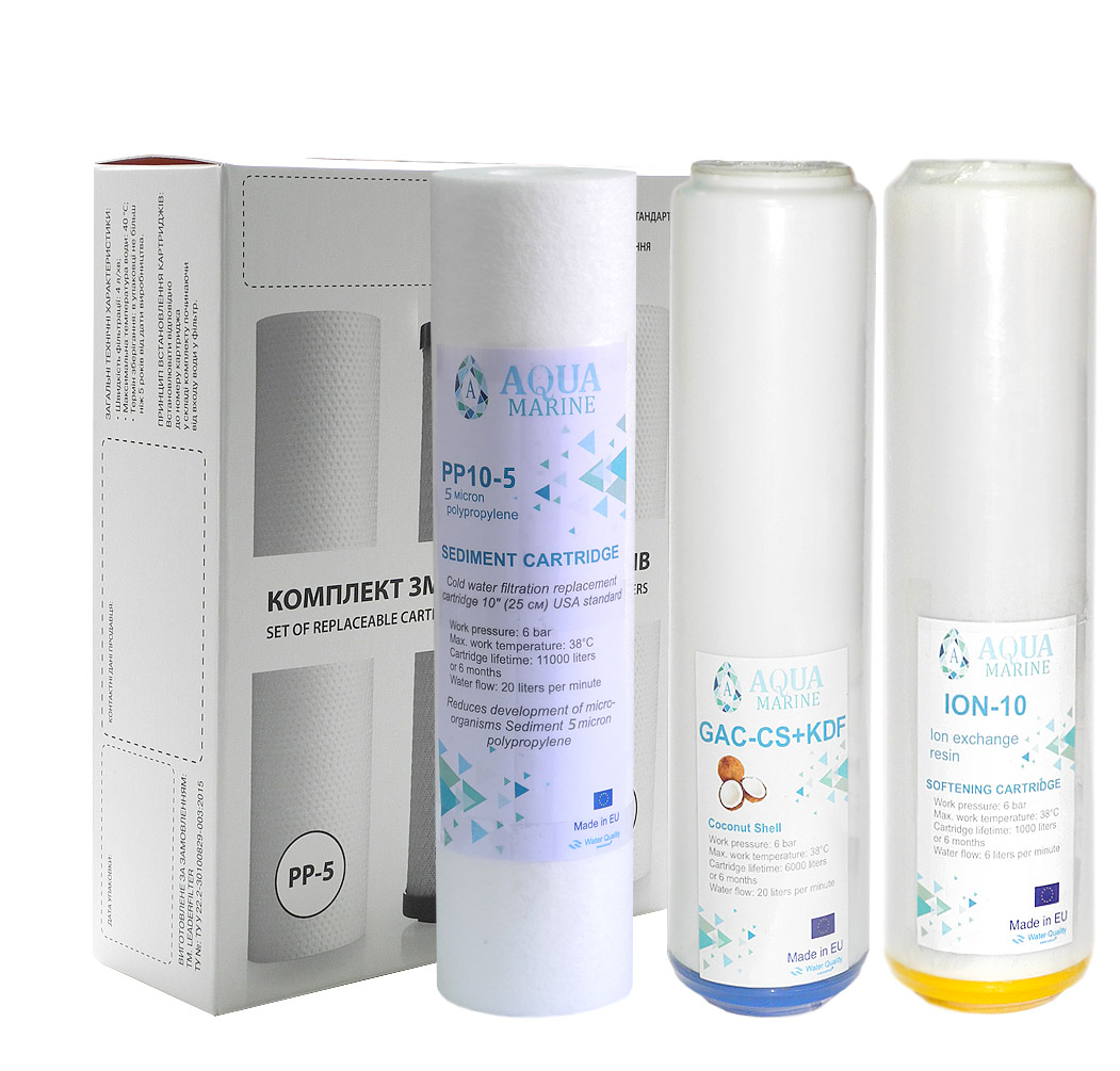 Комплект предфільтрів AquaMarine - SOFT розроблений спеціально для комплексного доочищення твердої водопровідної води. Він ефективно видаляє механічні домішки, активний хлор та органічні забруднення, знезаражує воду та знижує її жорсткість, запобігаючи утворенню накипу. Комплект підходить для використання у сумісних системах інших виробників.