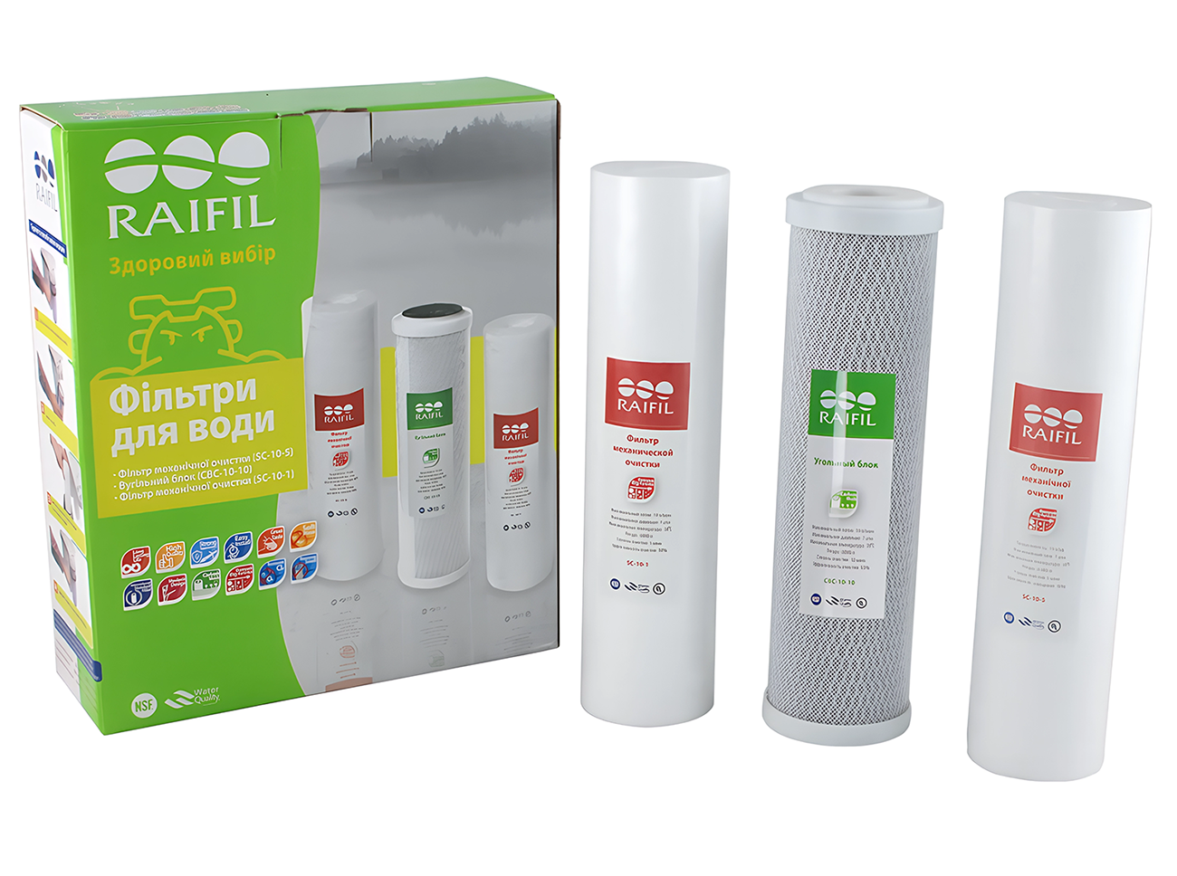 RAIFIL OSMOS GREEN-1 – це універсальний комплект із трьох картриджів для попереднього очищення води в побутових фільтрах типу "зворотний осмос" із типорозміром 10"×2,5". Розроблено для ефективного видалення механічних забруднень, хлору та органічних речовин із водопровідної води.