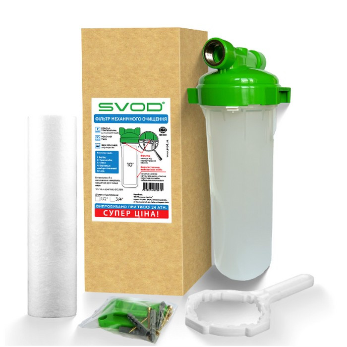 Магістральний корпус фільтру SVOD L1 1/2" призначений для очищення холодної води в побутових системах. Він забезпечує фільтрацію питної води та захищає побутову техніку (водонагрівачі, пральні машини, посудомийні машини) та трубопроводи від забруднень. Корпус сумісний зі стандартними 10-дюймами механічними, вугільними, антинакипними, знезалізними та іншими).