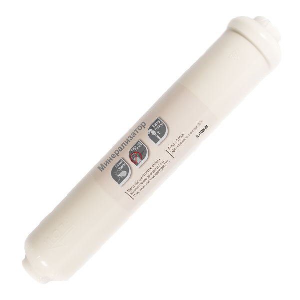 Мінералізатор систем зворотного осмосу використовується для покращення смакових якостей води та насичення необхідними мінералами. Картридж нормалізує рівень рН