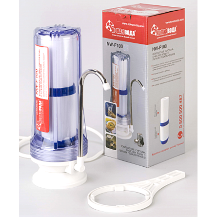Нова Вода NW-F100 – це невеликий фільтр для отримання питної води, який встановлюється на столі поруч із мийкою.