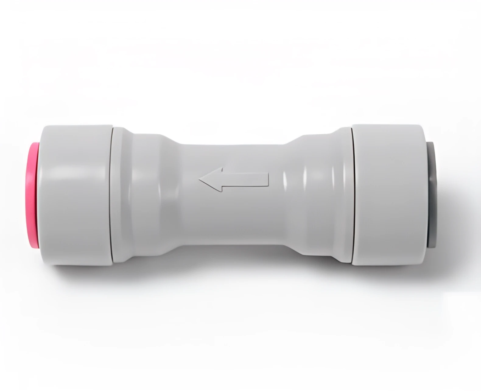 Зворотний клапан завдяки "швидким з'єднанням" John Guest забезпечує легке та надійне з'єднання з трубкою у системі зворотного осмосу. Він запобігає зворотному потіку очищеної води в дренаж.