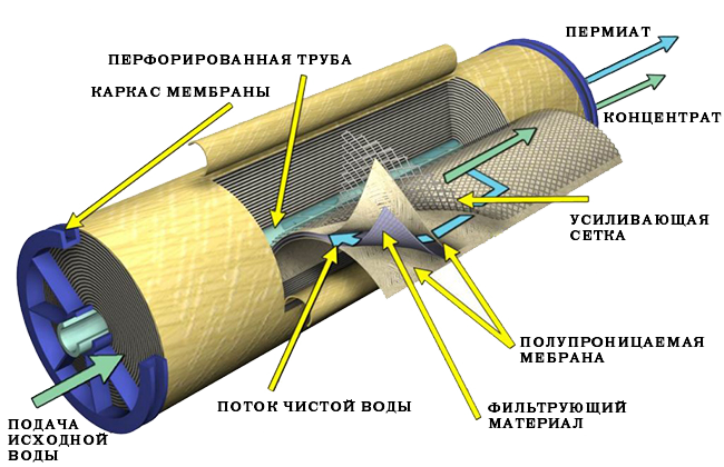 Перший етап робить воду чистою, але до досконалості її очищення доводить друга, мембранна стадія. На цьому етапі попередньо очищена рідина подається на мембрану зворотного осмосу, що складається з одного з кількох шарів матеріалу з порами лише одну десятитисячну частку мікрона. Пори настільки малі, що пройти через них може лише молекула води – і більше нічого. І в результаті рідина очищається до ідеального стану і навіть кип'ятіння вже не вимагає – настільки очищення якісне та надійне. При цьому все, що містилося у воді, на цьому етапі повністю від неї відокремлюється та зливається у каналізаційний стік.