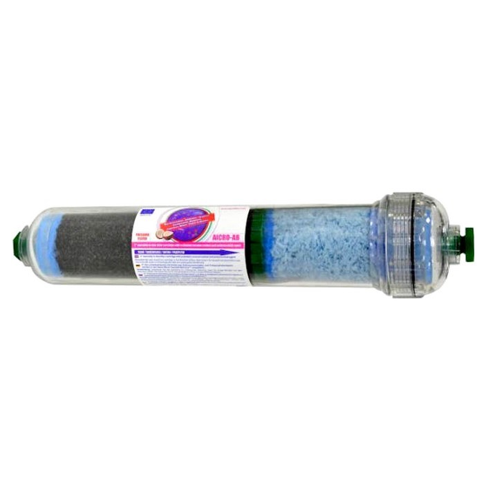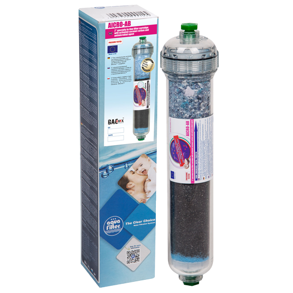 Лінійний картридж складається з гранульованого активованого вугілля (GAC) із шкаралупи кокосового горіха та бактерицидного поліпропіленового волокна. Видаляє хлор, органічні речовини та деякі пестициди. Покращує смак та запах відфільтрованої води. Технологія наносрібла BACinix™ захищає картриджі від мікробіологічного розвитку, підвищуючи картриджу довговічність. Він може бути встановлений у системах зворотного осмосу та лінійних системах. AICRO-AB є одним картриджем системи Excito-CL.