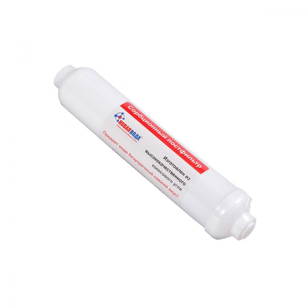 Постфільтр In-Line Нова Вода CL10-GAC - це посткарбон для систем зворотного осмосу, який здійснює остаточне очищення води від хлору та покращення її органолептичних характеристик. Являє собою змінний елемент, що встановлюється як заключний ступінь очищення у фільтрах зворотного осмосу. Проходячи через активоване вугілля, позбавляється небажаних запахів і набуває свіжого смаку.