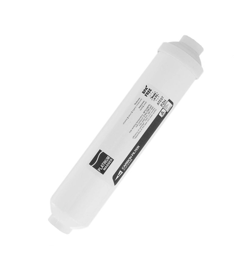 Картридж-посткарбон для систем зворотного осмосу Platinum Wasser   здійснює остаточне очищення води від хлору та покращення її органолептичних характеристик. Являє собою змінний елемент, що встановлюється як заключний ступінь очищення у фільтрах зворотного осмосу. Проходячи через активоване вугілля, позбавляється небажаних запахів і набуває свіжого смаку.