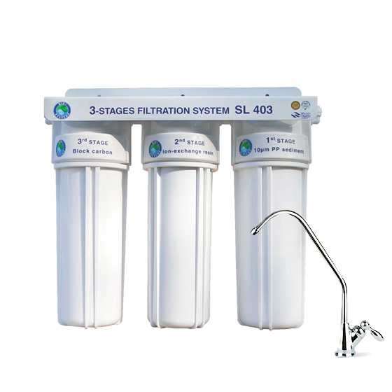 Система очищення води SL-403 New продуктивна та ефективна система для домашнього використання – сучасне та економічне рішення для очищення питної води без зміни мінерального складу. Ефективно видаляє із води всі основні види забруднень.