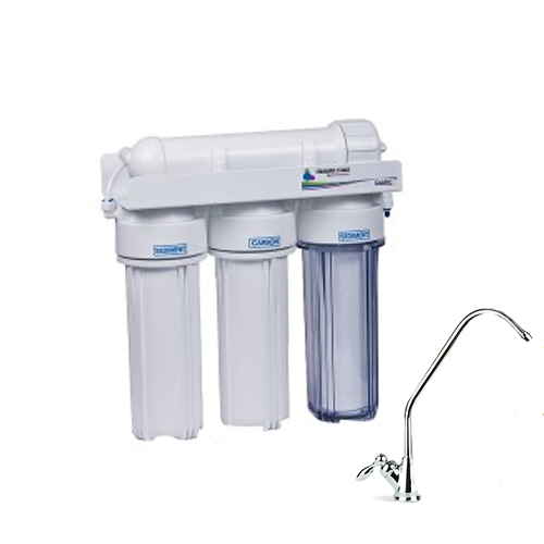 - Фільтр встановлюється під кухонною мийкою. Кран для очищеної води виводиться на мийку або стільницю. Усі необхідні для монтажу кріпильні та ущільнювальні елементи входять до комплекту постачання.