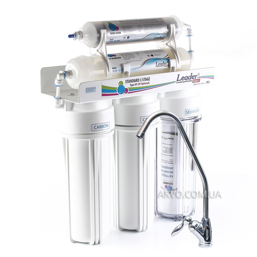 Водоочисник під мийку 5-стадійний з UF мембраною Leader UF5 дозволить насолодитися смачною водою з крана у себе вдома. У системі Leader UF5 застосовано UF мембрану, яка видаляє з водопровідної води не лише шкідливі домішки, а й бактерії з вірусами. П'ятий ступінь фільтра-вугільний постфільтр доочищує воду від неприємних запахів.