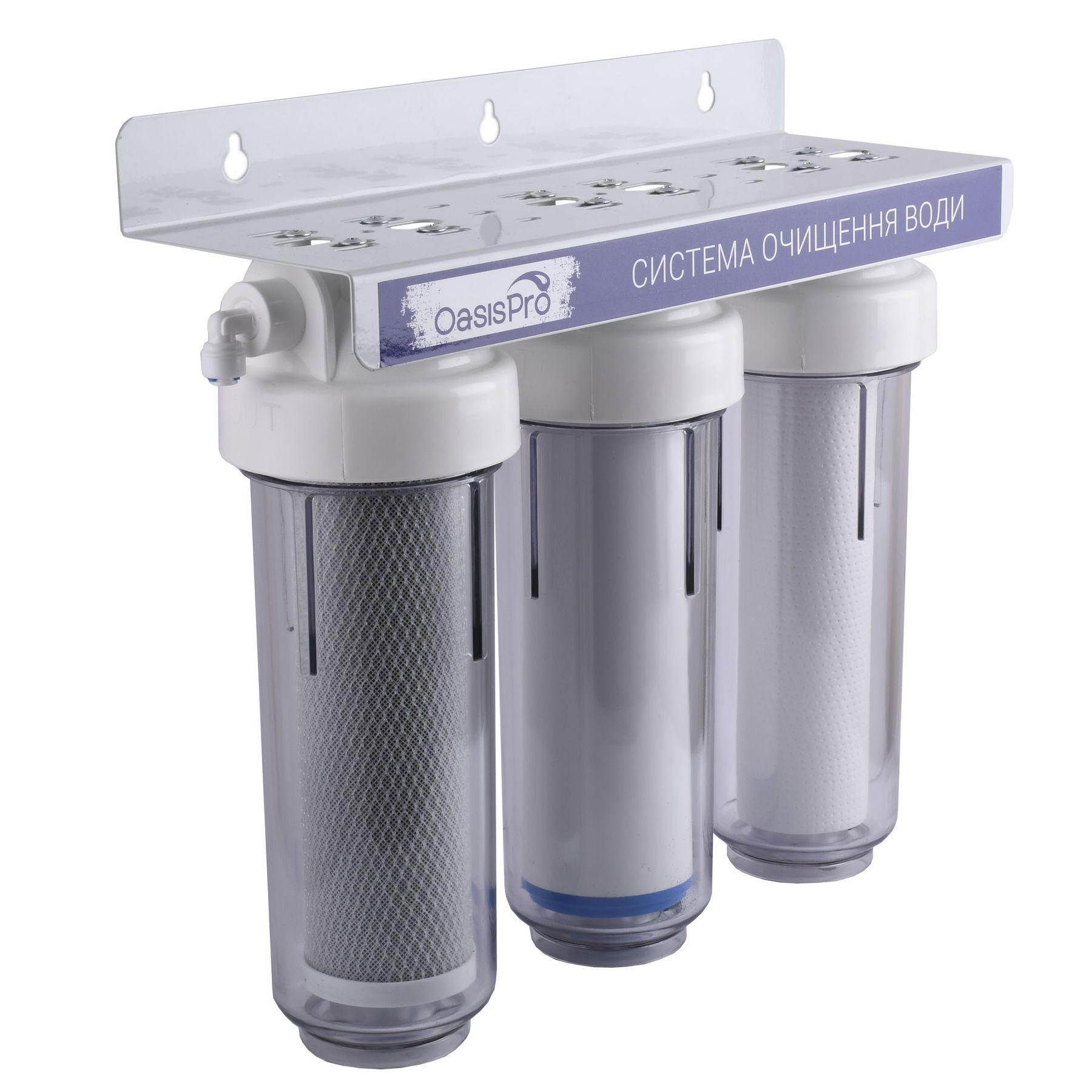 Система триступеневого очищення води ТМ «OasisPro» ВSL 303 ефективно очищає питну воду, що надходить із системи центрального водопостачання від різних шкідливих для організму людини забруднень і домішок: хлорорганічних сполук, механічних домішок.
