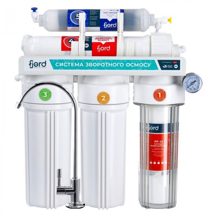 Система зворотного осмосу Fjord FRO 5-50 - це базова модель системи зворотного осмосу, що складається з 5 ступенів очищення, що забезпечує надійну фільтрацію та покращує якість питної води у вашому будинку.