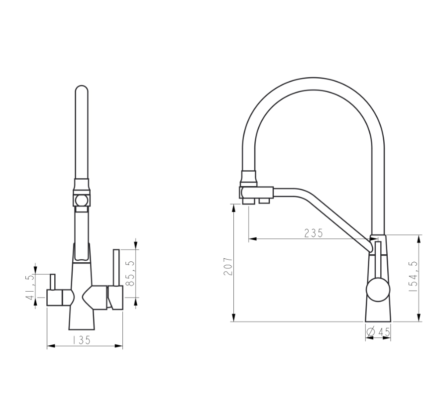 Гнучкий вилив – зручність при використанні з глибокими раковинами та посудом великого розміру.