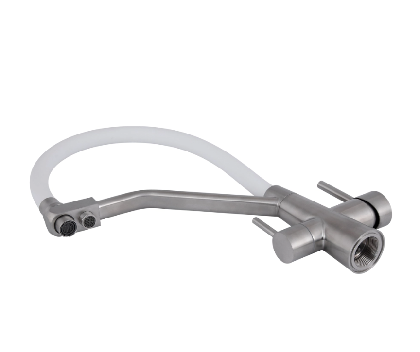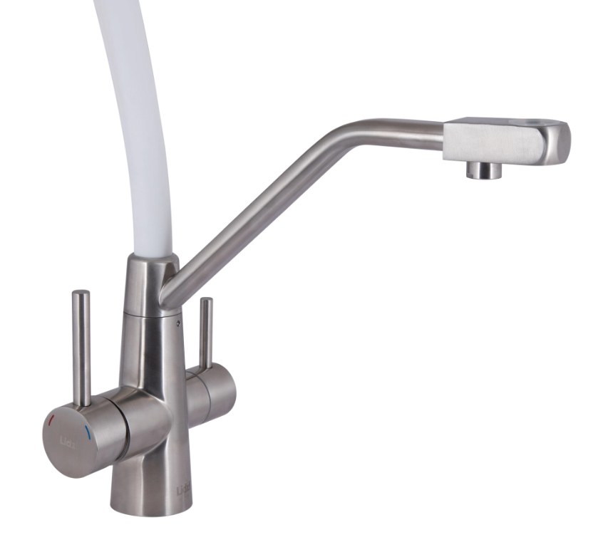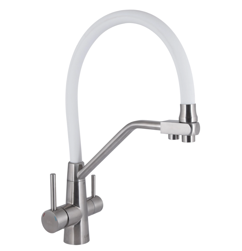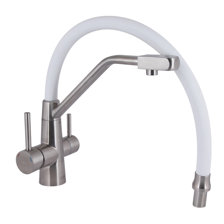 Lidz Aria 020F3 White/Nickel – це комбінований кухонний змішувач, оснащений гнучким виливом та вбудованим краном для питної води. Забезпечує зручне використання гарячої, холодної та очищеної води, за винятком їх змішування.