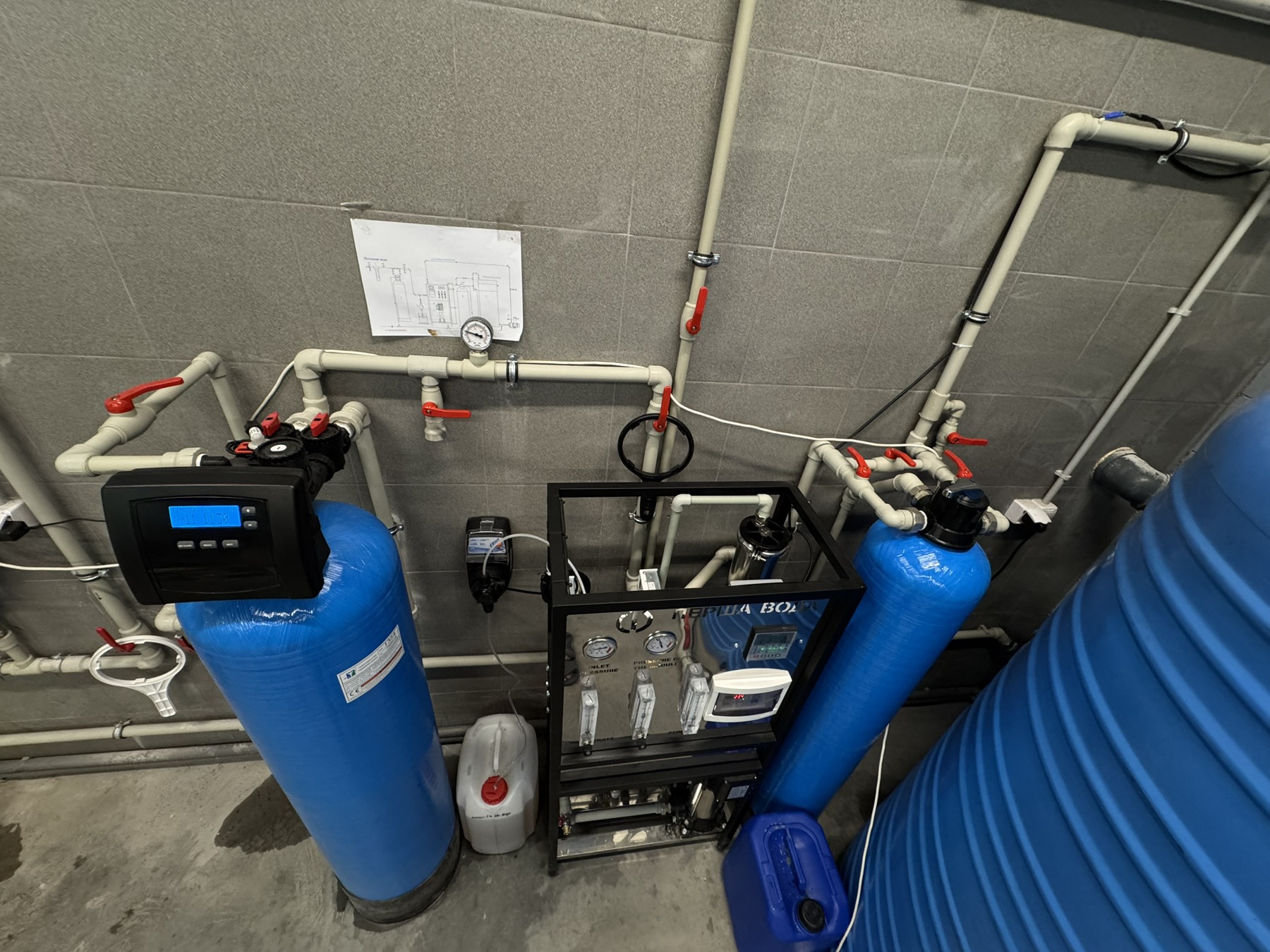 Система обратного осмоса смонтирована на прочной и эстетически аккуратной нержавеющей раме, предназначена для непрерывного получения до 250 литров очищенной воды в час. Используемые мембранные элементы обеспечивают удаление до 99% растворённых примесей, включая соли жесткости, органику и бактерии.